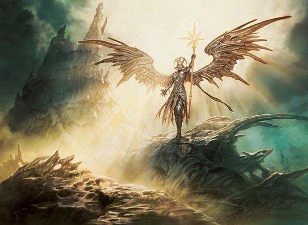 The Angel is one of those rare Magic cards that can have a severe psychological impact in addition to real power at the table. Against all but the most passive or controlling decks, she’s almost guaranteed card advantage, and because your aggressively-minded opponents will natually be swinging in with their best creatures. This isn’t Darwinism at work here, where the sick and infirm are the ones who get culled, but rather one that can destroy their best and brightest. With luck, after an exposure or two you may even find your opponents second-guessing or hesitating to commit once you start hitting that 6-mana mark, so it is more imperative than ever to try and hold a card in your hand at all times, even if it is just a Land, to play upon the power of suggestion.