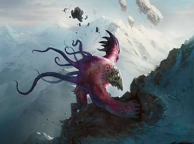 One route is to cheat out the Hand of Emrakul. A fairly lacklustre Eldrazi as far as Eldrazi go (it only has Annihilator 1), it’s still a 7/7 body that can be yours for as little as four Spawn tokens. It suffers from the same risk inherent in all eggs-in-one-basket strategies, but can be a real surprise for an unprepared opponent. The lack of Trample, however,Β in a 7/7 body makes the card less sexy than it might first appear.