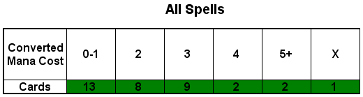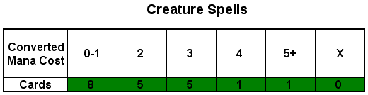 Unsurprisingly, a glance at the deck’s mana curve for creatures shows it aggressively constructed: