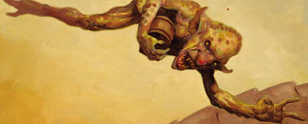 Turn 6 arrives, and Sam manages to get out her largest Sliver thus far, the mighty Brood Sliver. She attacks with her Victual Sliver, but with my graveyard filled with treats I have no problem activating the Grim Lavamancer to kill it on its way in. Back to me, I tap out to recall the Hammer during my upkeep, drop a Mountain and Chain Lightning the Brood Sliver. Swinging in with the Boggarts and the Lavamancer, Sam’s now down to 3 life and struggling.