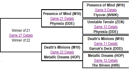Holy cow! This is really turning out to be a surprise tournament. Poor diluted Phyrexia lost. Dreams lost too. Just amazing.