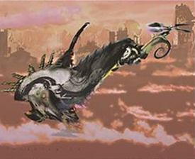 Jimi comes in with the Phantasmal Fiend on turn 11, and I let it through. Jimi then uses the Blue mana from the Underground River to trigger its special ability to switch power and toughness, making it a 5/1. I’d hoped she’d try and pump the little fella, and it paid off- I show the red card (Incinerate), and the Fiend’s sent off. Jimi replaces it with another Phyrexian War Beast and passes. Over to me, I’ve got little to do so I figure I might as well try using the Elkin Bottle. I activate it, and it actually pays off- a Forest. Playing it gives me three open mana now, and I use it to summon a Phyrexian War Beast of my own.