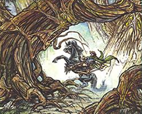 Now turn 12 and with no profitable attack option, Jimi summons a Foul Familiar. Topdecking a Shatter, I take out her War Beast and swing for lethal with the team- my own Beast, the Bears, and the Ancients. The Familiar cannot block, but Jimi isn’t entirely defenseless- she snipes the Bears on their way in with Guerrilla Tactics. She’s now down to 2 life, and I play a Woolly Spider before passing.