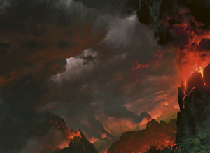 2005’s Ravnica, with its ten dual-coloured guilds, showed how just a little branding could turn groupings of the five colours of Magic into easily-graspable concepts for the playerbase. Although most of the guilds have faded into shrouded obscurity, we still here talk of Boros decks even now, indicating a deck that has both White and Red. Three years later, Wizards would repeat the trick, this time with tri-colour “shards.” A shard consists of a single colour and it’s two allied or “friendly” colours. (For those keeping score at home, a grouping of a colour and its two ‘enemy’ colours is called a wedge). For Jund, that primary colour was Red, supported by both Black and Green. In the setting, this revealed Jund to be a place of elemental fury, with a landscape littered with volcanoes, skies filled with dragons, and inhabitants engaged in a neverending struggle for survival.