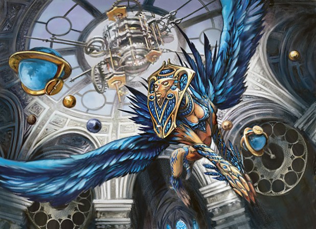 With Jund available as an opponent deck, my nemesis this time could be no other than Sam. In addition to loving the shard of Jund, Sam also happens to have a devour deck of her own that she delights in playing. For my part, I’d be leading the more thoughtful and pensive shard of Esper into battle, though certainly not a shard without its own formidable resources. In our analysis of Esper Artifice, we found it a solidly-built skies deck with some unique artifact twists. Now we’d see just how well that strategy paid off. Our notes from the three matches are as follows…