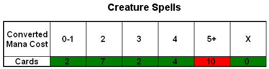 But – as you point out – despite all the ramp given, the mana curve is frightening. I guess i would not be too fair to put Wicked Big up against a White Weenie or removal-heavy black deck as the weaknesses of such a curve would be widely exposed in such a matchup.