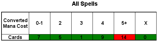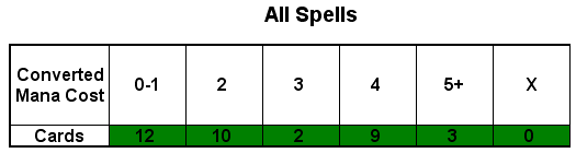 Here are both versions of the deck’s final mana curve, first without using suspend, and the other playing everything suspended. As usual, actual results will be somewhere in the middle as circumstances dictate.