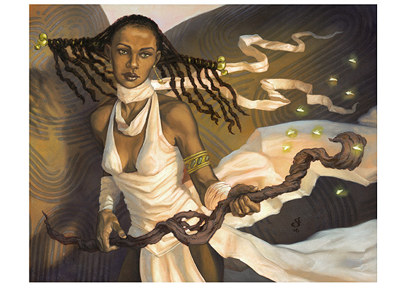 The Angel is something of an anomoly here- she doesn’t interact with her deck the way some of the others, such as the Arachnus Spinner in Entangling Webs. Indeed, she rather feels shoehorned-in to give the deck an attractive foil rare. This is welcome news for any Angel collector, but it’s hard to escape the feeling that the slot really belonged to the Dungrove Elder. A 5/5 flyer for six mana is very competitive, and her ability will often prove quite frustrating for your opponent, but aside from being a quality finisher she really doesn’t add much to the deck.