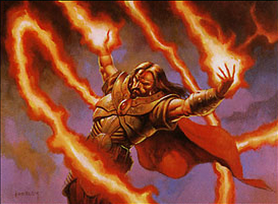 If you need a chunk of damage quickly, you also have recourse to a Lightning Blast. Offering a fair chunk of damage, this will often help as a finisher on a wounded opponent, or a good way to remove threats that outclass your own creatures (particularly useful against the Blue Bomber or Green Way Wild decks, the two with the fattest back-end). Finally, there’s a miser’s copy of Blaze, an X-spell that gives you some dramatic range and reach. Like Lightning Blast, you’ll often have to make a calculation as to whether or not its better used to clear out a defender or saved to finish off your foe.