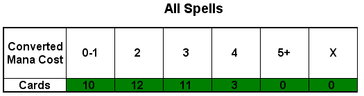 The final three cards are a trio of artifacts. There’s a singleton Mimic Vat as well as a pair of Blades of the Bloodchief, all of which feeds into the deck’s combo engine. As mentioned earlier, the synergies between a number of cards adds a layer of strategy to the deck ordinarily absent in straight-beats aggro. Here’s the deck’s final curve for all spells and creatures: