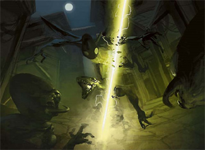 By themselves, the weenie-size creatures of Charge don’t seem all that impressive. The Boros Swiftblade, for instance, often is little more than a two-mana 2/2, and the 1/1 first-striking Boros Recruit is often outclassed by its later comrades. The strength of the deck, then, is in the many ways it finds to pump up its beaters’ power, making them far more formidable on the battlefield. Between cards like the Flame-Kin Zealot and Rally the Righteous, there always seemed to be an air of tension just outside the red zone, knowing that Charge could explode at any given point in time.