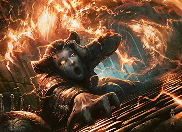 This deck takes a simple mechanical theme- flashback- and supports it in two primary ways. First, the milling engine- while not robust enough to serve as a consistent win condition on its own- does a terrific job at keeping your graveyard well-stocked. Indeed, it’s strong enough that if you’re not careful, you can deck yourself out of the game as I did in Game One. Secondly, Burning Vengeance is a perfectly-positioned card for the mechanic it supports.
