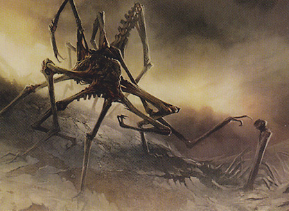 Next up are your graveyard beaters. These creatures rely upon you having a robust scrapheap to be their most effective, and naturally will be stronger the longer you’re able to keep in the game. The Boneyard Wurm is the first of the two beaters represented here. Frequently a steal at only two mana, their power and toughness are directly tied into how many of your creatures have wound up dead or milled away on your watch. Like the Armored Skaab, these are so central to your strategy that you get to play with four of them. The other creature here- the rare Splinterfright– is a singleton. Essentially a hopped-up Boneyard Wurm, it brings a couple extra tricks along for its slightly higher mana cost. First, it has trample, which makes a huge difference when dealing with massive fatties beating in on your opponent- they can’t just chump-block away your biggest threat. Secondly, Splinterfright mills you for two cards every upkeep, so it essentially helps make itself bigger over time.