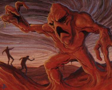 It’s in the four-drops that things start to become very intriguing. One of the subthemes of Tempest was the mutability of creatures that were either made out of or influenced by flowstone, a semi-aqueous solid which made up large sections of the topography. In game terms, this was represented by the ability to adjust certain creatures’ power, typically at the expense of toughness. The Flowstone Giant gives you a choice of modes: its natural 3/3, or for the cost of