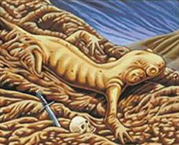 Sam has another blank turn on turn 8, so I send in the troops for 5. The Salamander draws a second Dark Banishing, but it gets repalced by a Firefly. Back to Sam, she Dream Caches, putting the two cards back atop her library, then plays a Mindwhip Sliver. Undaunted, I press the attack with the Goblins and Firefly. Sam blocks one of the Goblins with the Sliver, but I opt not to pump up the Firefly. That puts her down to 11, but it allows me to finish off the Mindwhip with a buyback Searing Touch. Sam manages to string together a couple more uneventful turns but doesn’t find anything meaningful in the deck in time to stop the Firefly from killing her.