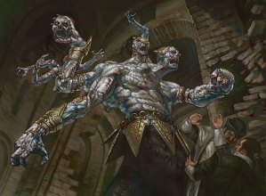 That isn’t to say that the deck is without its shortcomings. Chief amongst these is its removal package. Contrary to the perception of some, Blue actually has a solid range of options for removal, even if most of them are tempo-based and temporary (see: bounce) rather than the more permanent solutions seen in Black and Red. Here we find our “magic number” is 2/2. Most of the deck’s removal stops being as effective there, as you’ll need to chain the Dead Weights or Farbog Boneflingers with some combat interactivity if you’re trying to kill anything larger- though, being fair to the Dead Weights, you can use them to shrink something larger if it comes down to it. That leaves the Corpse Lunge as the only card capable of dealing with bigger beaters, though its limit of 6 (if you exile a Skaab Goliath in the casting). In essence, this is another instance of a deck that will be doing the bulk of its work in the red zone.