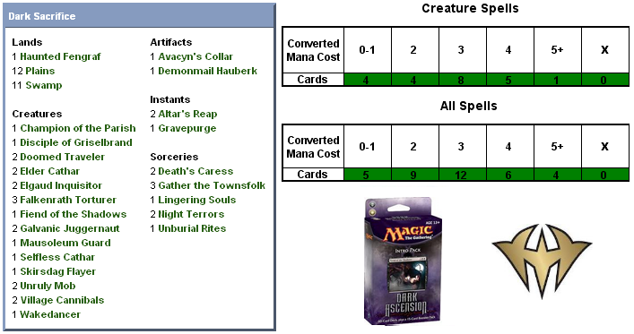 Today’s deck is a reminder of the passage through that period of time in gaming’s history. It took the distance of years for a deck like this one to even be able to be printed, given the blending of Innistrad’s overarching theme with some of Magic’s more fundamental mechanics. This was best summed up by a recent column by developer Zac Hill on the mothership, discussing individual cards in Dark Ascension and some of the comments they saw in the development database, Multiverse: