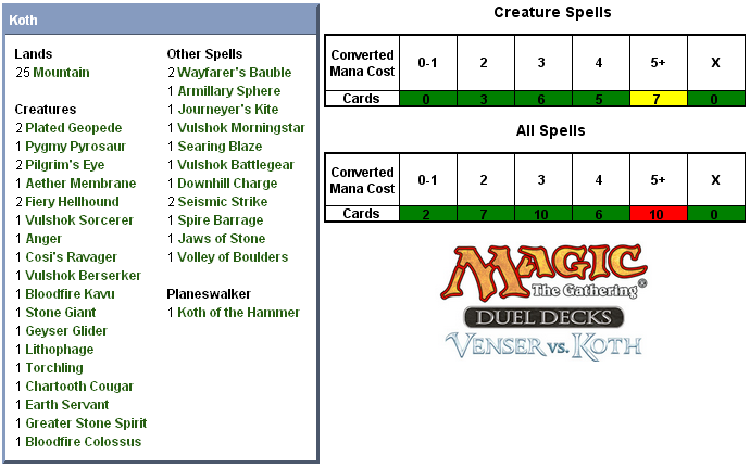 Koth’s deck seems less fun to play than Venser’s. It ‘feels’ like the Dragons deck in Knights vs Dragons. Hopefully I’m wrong.