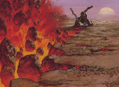 It’s a matter of balance, then, that has dictated Koth’s mana curve. Note, for instance, the matter of burn. We observed in the deck analysis that Koth curiously lacked any X-spells, which one would think would be a staple here given their versatility. But having now played the decks out, it becomes apparent that Koth does have X-spells…of a sort. With cards like Jaws of Stone and Seismic Strike, you are effectively converting all of your mana into direct damage. That all-or-nothing proposition allows the deck to put a bit of choke on effective damage output, since you can’t effectively cast some of your burn spells until a fixed point in the game. Even if you opt to use Koth as a mana accelerant (his -1 ability), you’re still hampered by how many Mountains you have in play. It’s clever design, helping to ensure that a mono-Red aggressive deck doesn’t completely dominate a two-colour controlling deck that needs some time to get established. That also goes some way to help explain the prevalence of expensive creatures and effects, though unlike your burn suite Koth certainly does help you ramp out your beaters if you’re fortunate enough to have him in play.