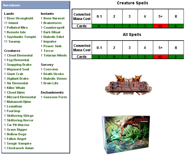 Fresh from our look at the Red/Green Ground Pounder, today we move on to the other half of the Beatdown equation, Aerodoom. It is the opposite of Ground Pounder in nearly every way save one: it, too, brings the plain with a ton of fat creatures.