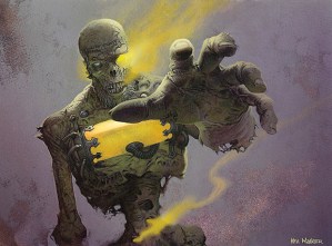 Vampire Onslaught was a successful deck, jam-packed with aggressive creatures but with little room left over for much of anything else (a playset of Dismembers, a couple Blades of the Bloodchief, and- why not- a Mimic Vat). It looked to race right out of the gate with eight one-drops, moving up to a full dozen two-drops before tapering back off. In short, if it couldn’t establish battlefield dominance early, its chances of winning dropped precipitously- though to its credit the deck did have some combo engines in place for just that contingency (looping Mimic Vat/Viscera Seer/Kalastria Highborn). Although the Zombies are every bit as hungry as the Vampires were, they do seem to take a more moderated approach.