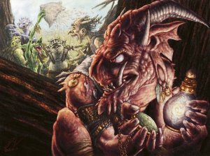 Overall, this is a solidly midrange offering that takes a few turns to get going- not the sort of thing you usually expect from Goblins in Magic. The novelty and flavour is certainly a plus, but overall we’ve thus far been fairly underwhelmed by our Lorwyn experience.Ā Boggart Feast has done little to change that. There’s certainly some potential for fun here, though!