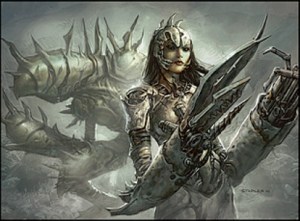 I finally move on turn 9, killing off the Fettergeist with a Stingerfling Spider I’ve been holding. A third Burning Vengeance, however, all but insures I’ve lost this game. Sam flashes back a Faithless Looting, sending 6 damage straight at me while discarding a Geistflame and an Island. My turn 10 Blade Splicer is just renting space, and she doesn’t even notice my 2-point attack. Sam hits me for 2 with a Pillar of Flame, then finishes me off by flashing back the Geistflame.