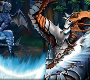 Now turn 3, I play the Seneschal, then kill off her Belcher with my Squirmer. That leaves the Squirmer open, but after summoning a Little Hissy Sam instead decides to keep the offensive pressure on and pops another shield, this time a Hydro Spy. Next turn I play the Spy, then force the trade between the Squirmer and Scorpion with an attack. Then I send in the Aqua Seneschal, putting Sam down a shield and me up a card. Alas, her shield is a Sprout, and the shield blast effect lets her play it immediately. Back to Sam, she summons a Draglide the Swiftest, then attacks my Seneschal with her Hissy for another trade.