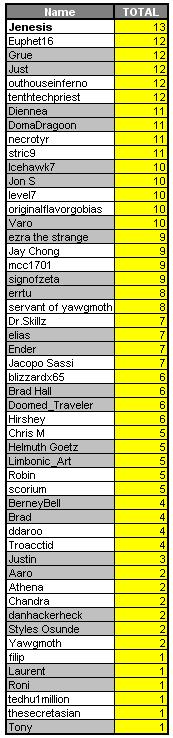 Finally, Spiraling Doom was the rare deck that recieved full, unanimous backing from the predictors. signofzeta had perhaps the most amusing motive for backing: “Spiraling Doom, cause I don’t think that Grab for Power can get it’s 3 artifacts on time, and without them, I don’t think it stands a chance. And besides, Spiraling Doom has “Doom” in it’s name. I mean, it’s Doom. I predict that Spiraling Doom will win the division just because it has “Doom” in its name.”