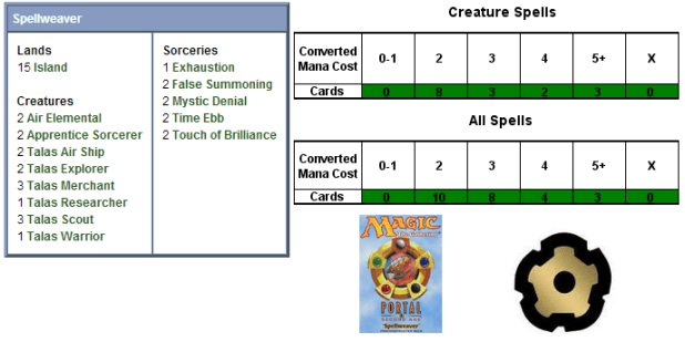 Today’s deck, Spellweaver, represents the nation of Talas. Although a lesser player in the loose storyline that connects Portal Second Age, it’s a peek at an interesting society which appears to reimagine a maritime/mercantilist society in the fashion of North Africa. The deck itself fuses elements of both control as well as the traditional Skies-based aggression.