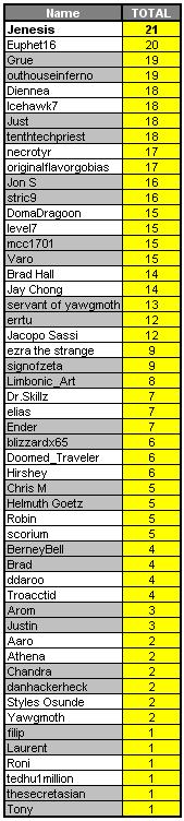 Next, let’s have a look at the Prediction League. Jenesis still leads the pack, but Euphet16 is right behind! With three points still left to play for, a few others in the pack still have a shot as well. It’s worth a reminder here- as we might not have called it out at the start of the competition this season- as per custom, should there be a tie at the top at the end of the competition, the winner of the prize package shall be chosen at random- though in a break from the past the ‘runner up’ will be given a consolation prize (to be determined) as well as having their name written down in the immortal register of champions!