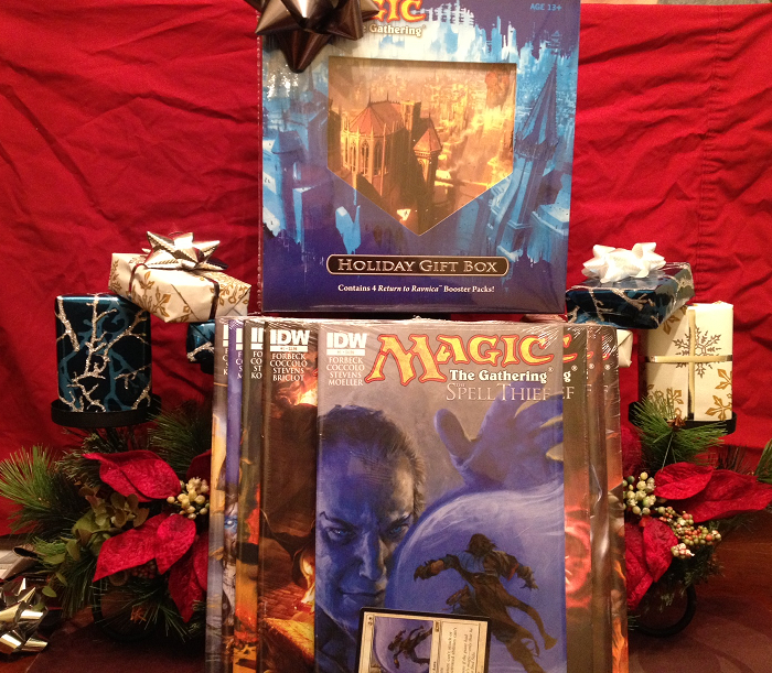 I would definitely give the holiday gift pack to my friend that got me into Magic! That way he would have some boosters lying around and and we could try out a booster draft, we’ve always wanted to give that a shot! I’d probably keep the comics for myself- I’m the only person in my friend group who plays Magic and collects comics. As for the decks and stocking stuffers, I would just distribute them around my group of friend who plays magic, with a little extra going to friends who don’t have a lot of $ to spend on cards at the moment. I might keep one in reserve though, so if I meet someone wants to give MtG a try I can just give them deck to get them hooked! Always good to bring new players into the fold!
