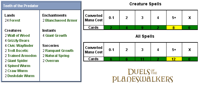 Today we look at the the Green half of this equation, with Garruk Wildspeaker’s deck Teeth of the Predator.