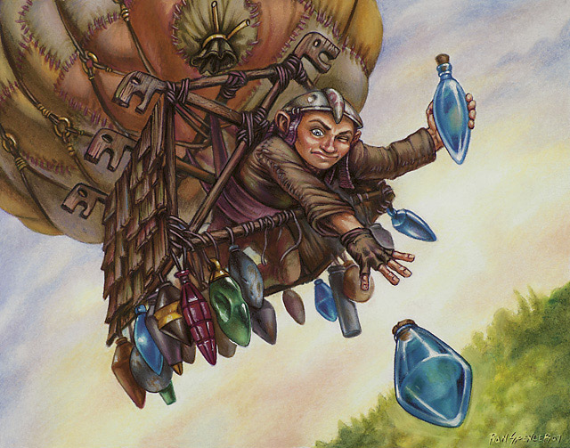 Now into the three-drops, we find another tribal card in the Kithkin Zephyrnaut. Thanks to kinship, the Zephyrnaut can grow from a 2/2 on the ground to a 4/4 flying, vigilant beater that’s still going to be around to defend you (albeit as a 2/2). It’s a superb ability, though tempered somewhat by the fact that less than one-third of the deck’s cards will trigger it. For maximum impact, the Zephyrnaut demands more homogeneity than is on display here, where Kithkin mingle alongside Faerie and Merfolk.