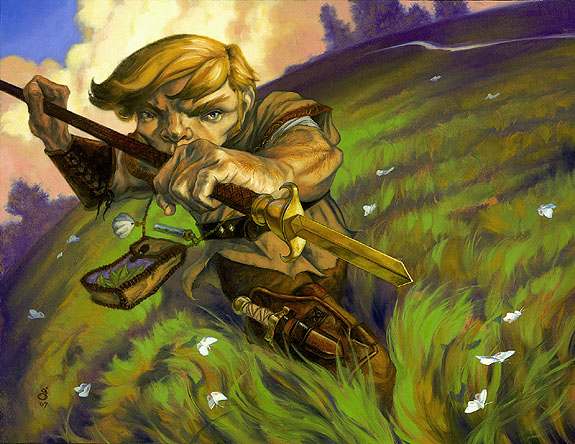Thus far it’s been nearly all Kithkin, but as we move to the deck’s high density of four-drops we begin to see the other tribes emerge, all with the common theme of being Soldiers. The Fae get a nod with the Sentinels of Glen Elendra and Fencer Clique, with the deck offering a pair of each. The Sentinels are a surprise blocker or attacker, thanks to their flash and flying. The Fencer Clique, on the other hand, has a different kind of trickery all its own- the ability to retreat to the top of your library. This is a fine way to save it from certain demise, but otherwise has little impact on your board, though it may not always be a card you’ll feel great about saving.