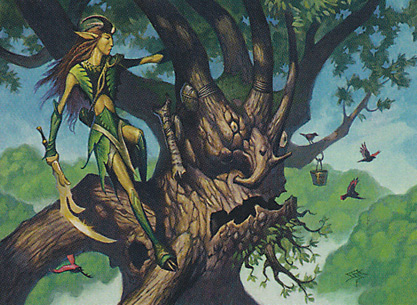 The deck really opens up with the four-drops, for its here that it can begin to flaunt its strategy of fat. First up is a pair of Ambassador Oaks, 3/3 Treefolk Warriors that bring along a 1/1 Elf Warrior token. Incidental 1/1 creatures aren’t always useful- though they’re never entirely useless, either. The question usually is how they are used, since their ability to serve as an attacker is diminished after the earliest stages of the game. As it happens, you’ve got a few ways to make the token useful here, not least of which is to offer it up to Unstoppable Ash.