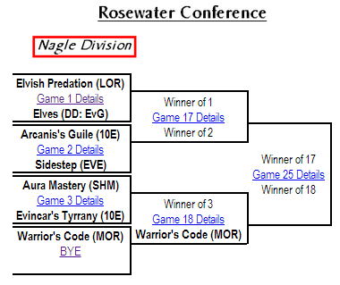 For this first week of matches, we’ll be looking at Games 1, 2, and 3- all of the exciting opening-round action. Then next week we’ll play out the remaining three matches to declare a winner for the Nagle Division, before moving on to the next. Because there were only twenty-six precon decks printed in this season, we have a few byes sprinkled about. As a result, there will be a few less matches to predict, making each one you do have even more crucial!