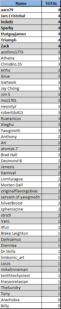And there they are, the aspirants of the Tinsman Division! Don’t forget to leave your predictions for Games 5 and 6, which will go up sometime this Sunday. We’ll happily take predictions anytime up until then, and best of luck to all!