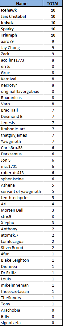 Now let’s take a look at the updated leaderboard. As always, please bring any discrepancies to our attention and we’ll be happy to correct.