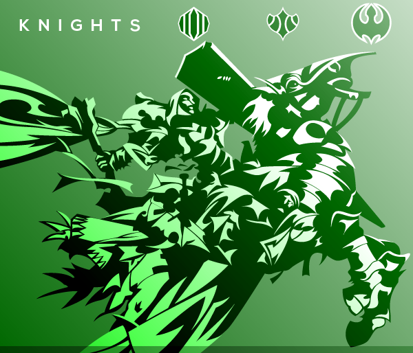 These three decks to me represent the best of what knights have to offer from a variety of perspectives. They are highly synergistic, building critical mass in their own unique way before tearing across the board. Bant Exalted’s mechanic is perfectly suited to the image of the lone champion riding forth, ready to take on all the world has to offer. Bant on the March mixes things up just enough to keep them interesting and fresh without becoming alien. Meanwhile, the Duel Deck’s tribal synergy is top-notch, providing multiple avenues to turning a rag-tag group of weenies into a all-star smackdown.