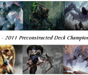 When we first began the Preconstructed Deck Championships a year ago, we knew we wanted to get to a place with it that engaged you, the reader, but we weren’t quite certain how. We gave it some further thought the next time, for the 2009-10 Champions, and were encouraged when a number of you continued to leave predictions for each match. Third time lucky, as they say, we’re thrilled with the format- and turnout- for this inaugural contest event, and you can be sure we’ll be doing it this way going forward.