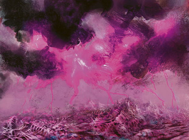 Our next stop in our tour of the shards of Alara is the world of Grixis, a bleak and dystopian world where the dead both outnumber and hunt the living. Vast bonescapes cover the terrain, fields littered with the remnants of those too far deteriorated or scattered to be reanimated or repurposed. Small pockets of humans and other races band together in pockets, hiding from the horrors about them. If it helps, think of the humans in the Terminator series in the future where machines hold sway. In a word? Grim.