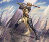 Mirrodin introduced a few noteworthy mechanics to the game, one of which has become ‘evergreen’ (or core set mechanic) and another which has something of a black mark attached to it. It’s hard to imagine the contemporary game without Equipment, but prior to Mirrodin that artifact type didn’t exist. You might have cards that simulated it, ranging from Ashnod’s Battle Gear to Flaming Sword (which actually was a creature aura). Indeed, even at the start of the game there was a certain flavour gap between artifacts that were obviously player-focused (like, say, Sunglasses of Urza) and those that might almost be considered proto-Equipment like the Helm of Chatzuk and Illusionary Mask. Mirrodin finally did away with that rather awkward disconnect and made Equipment explicit.